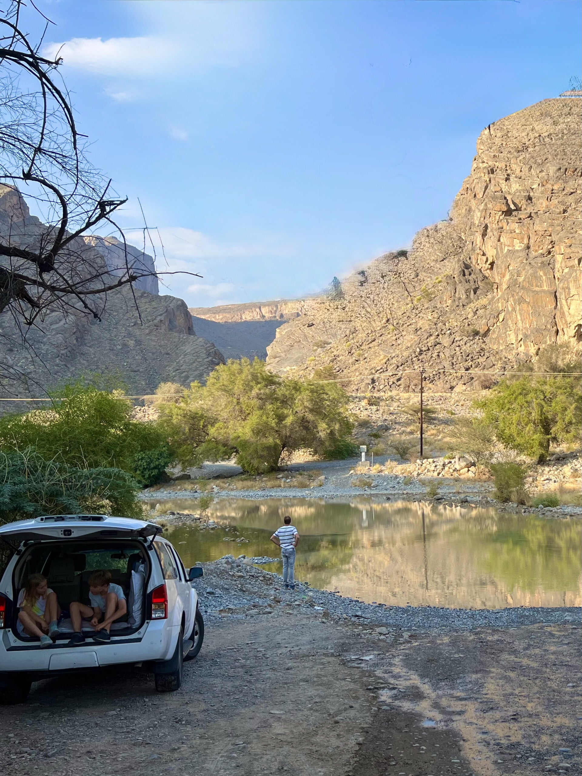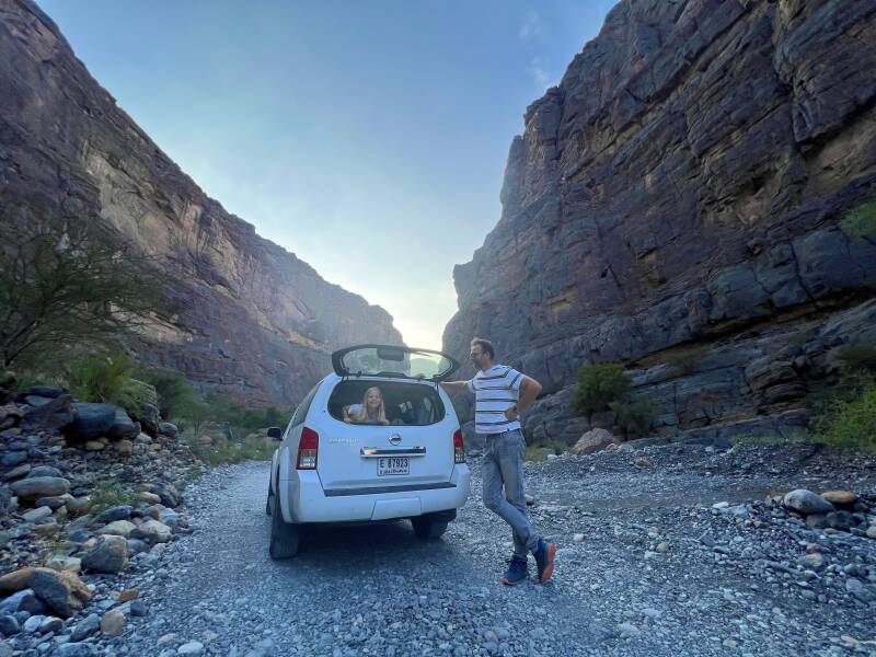 To drive into the wadi, we first had to pass through a flood. As we continued deeper into the wadi, the gorge between the mountains became narrower and more impressive.