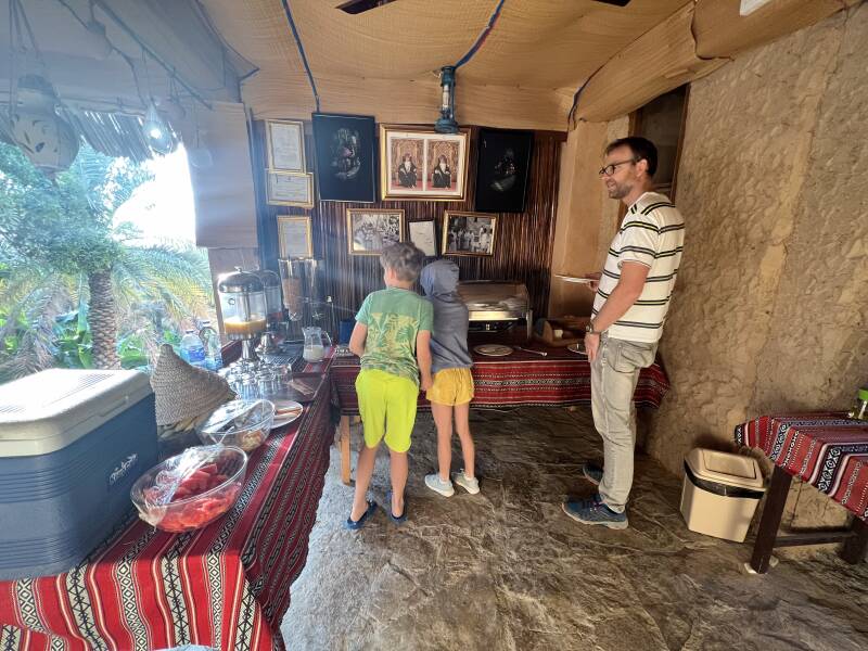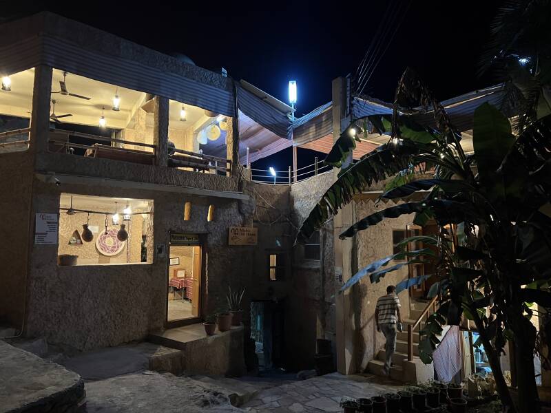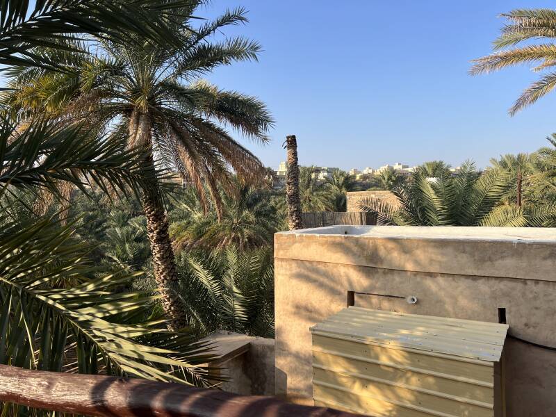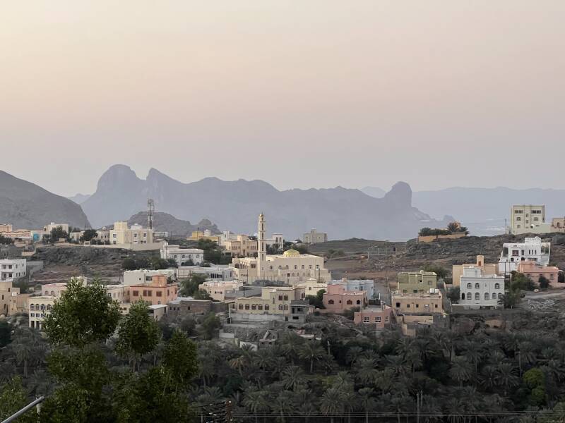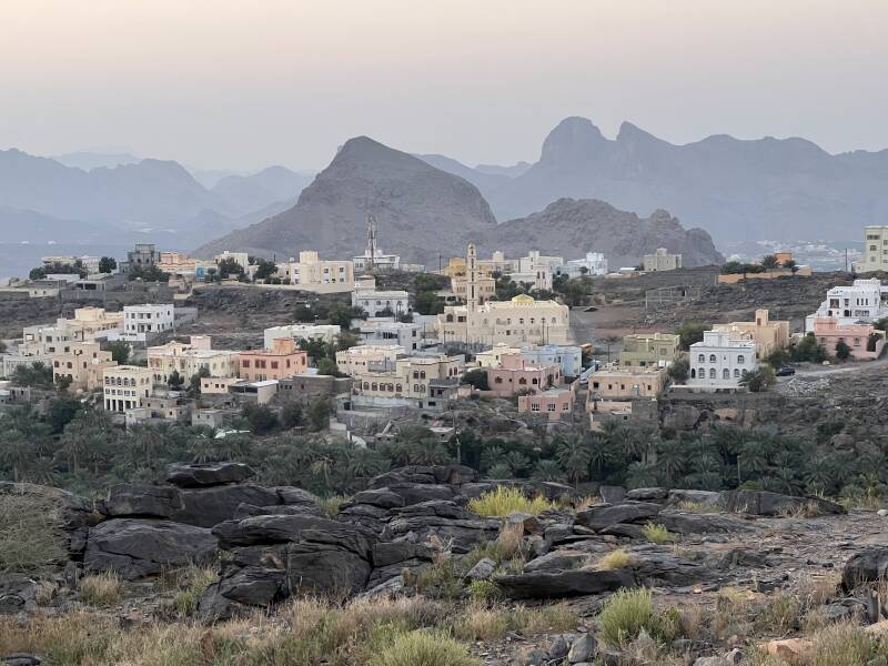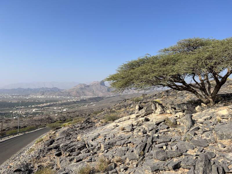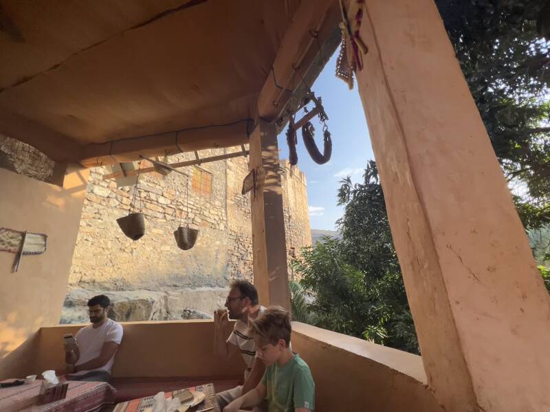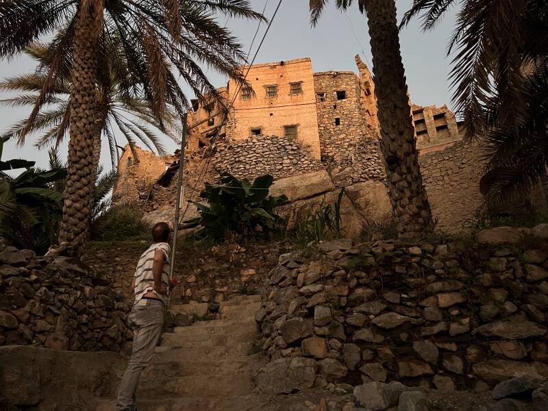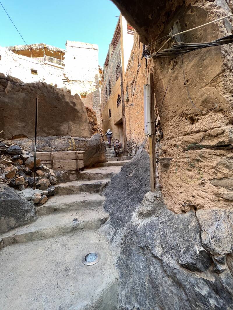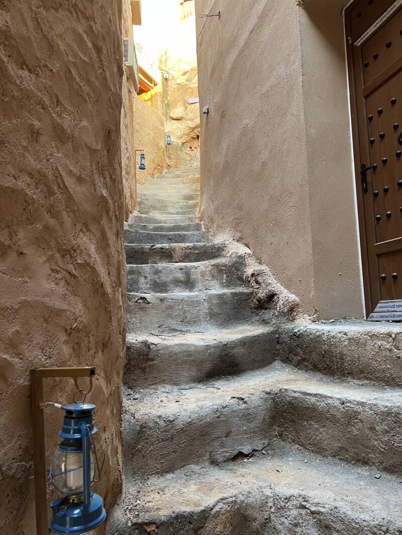 The terraces make use of a centuries-old irrigation system known as Falaj. This is essentially a winding river that has been carved into the rock of the mountain that transports fresh spring water. It runs from higher in the mountain, down into the terrace gardens where the dates, mangoes and other trees are cultivated.