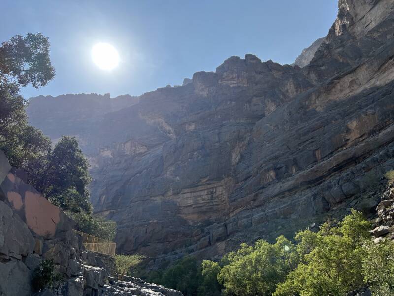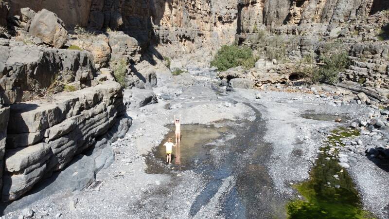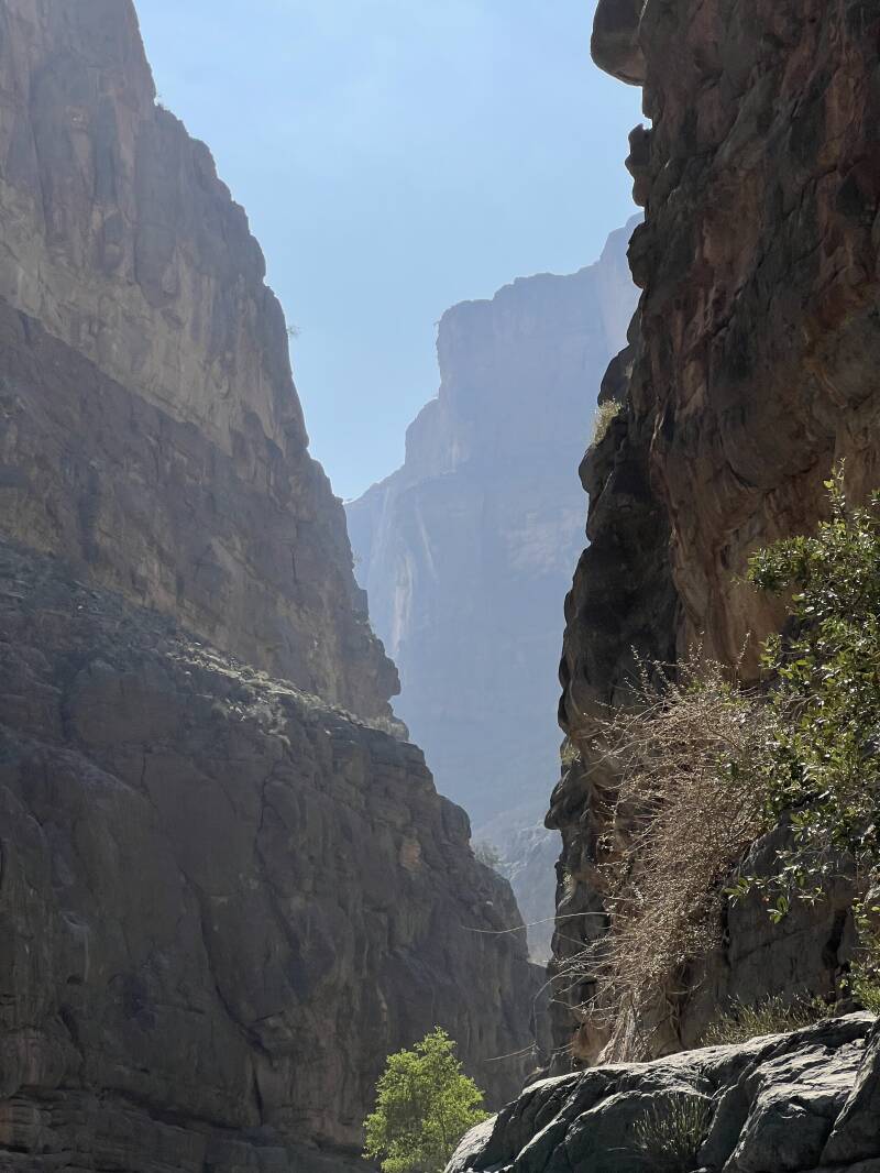 As Adventure-seekers and lovers of nature, we definitely wanted to 'do' the so-called 'Omani grand canyon' or 'grand canyon of Arabia': the Wadi Ghul, named after the village of Ghul. The Wadi Ghul is an immense dried riverbed close to Jebel Shams (‘Mountain of the Sun’), the highest peak in the Hajar mountain range. The canyon is breathtaking beautiful, reaching in some points 1 km (0.6 miles) in depth.