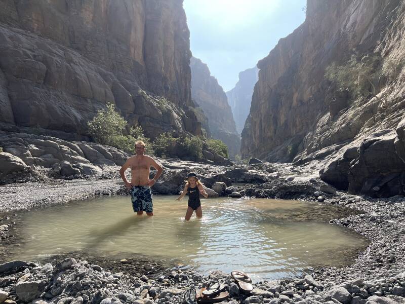 ... there are stunning views, small oases and breathtaking overhangs. We put our swimsuits on and just had a relaxing time with bathing and a picnic. And nobody around, lovely.